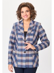 Жакет женский удлиненный, полуприлегающего силуэта с центральной бортовой застежкой на пуговицы до линии перегиба лацкана. Спереди рельефные швы от плечевого шва, отрезной бочок и карман с клапаном. Спинка с рельефами от плечевого шва. Рукав втачной, двухшовный, 3/4, с небольшим разрезом в локтевом шве. Воротник пиджачного типа. Жакет выполнен из джинсовой ткани. Перед жакета на подкладке.