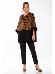 Жакет женский свободного силуэта, двухцветный, выполнен из трикотажной ткани на подкладке. Рукав украшен Боа,сзастежка центрально-бортовая на две петли и пуговицы.