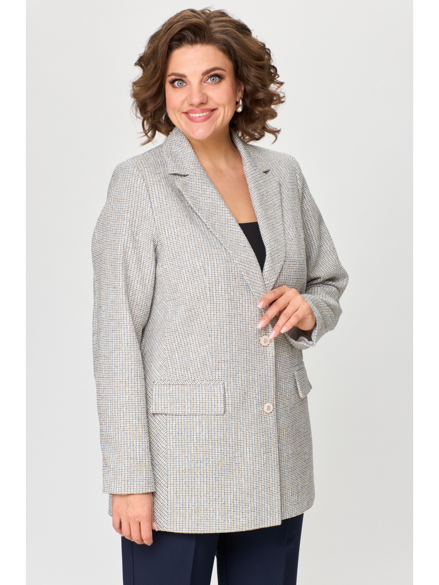Оформить заказ →Жакет удлиненный, из рогожки, полуприлегающего силуэта с центральной бортовой застежкой на пуговицы до линии перегиба лацкана. По переду имеется отрезной бочок и вертикальные вытачки. С прорезными карманами с клапаном и двумя обтачками. Спинка цельная. Воротник пиджачного типа. Рукав двухшовный, втачной. Жакет на подкладке.