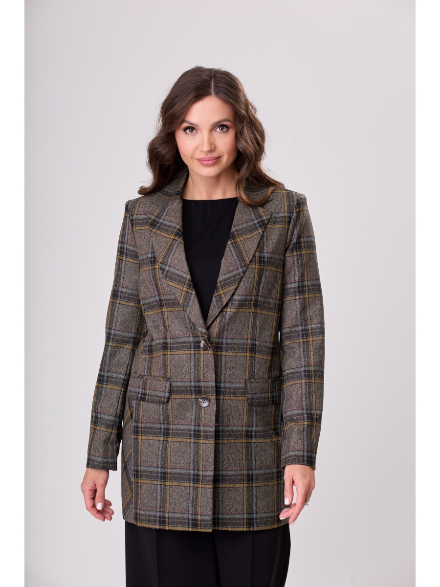 Оформить заказ →Жакет женский удлиненный, из текстильной ткани, полуприлегающего силуэта с центральной бортовой застежкой на пуговицы до линии перегиба лацкана. По переду имеется отрезной бочок и вертикальные вытачки. С прорезными карманами с клапаном и двумя обтачками. Спинка со средним швом. Воротник пиджачного типа. Рукав двухшовный, втачной.