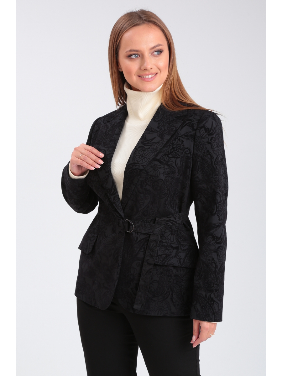 Оформить заказ →Интересный женский жакет разбавит Ваш офисный гардероб и сделает необычным Ваш повседневный образ. Однобортный жакет полуприталенного силуэта, на подкладке, с плечевыми накладками. Воротник пиджачного типа с отложными лацканами. По переду застежка-пояс на полукольца и прорезные карманы с клапаном, талиевые вытачки и рельефы. Низ бортов закругленной формы. Спинка со средним швом и рельефами. Рукав втачной двухшовный длинный.