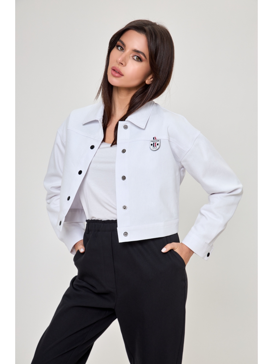 Джут короткий, до талии. Рукав длинный с манжетам. Застежка по переду на кнопки. Горловина обработана воротником. Спинка декорирована планкой на кнопках. Универсальная вещь в гардеробе каждой модницы, актуальна вне зависимости от сезона. Джут 961 черный снят с брюками 1131 и майкой (футболка) 1015 Anelli Laurel.