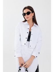 Джут короткий, до талии. Рукав длинный с манжетам. Застежка по переду на кнопки. Горловина обработана воротником. Спинка декорирована планкой на кнопках. Универсальная вещь в гардеробе каждой модницы, актуальна вне зависимости от сезона.