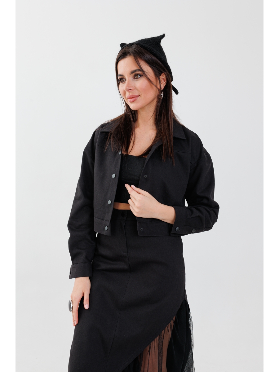 Жакет до талии с длинными манжетами и застежкой на кнопки.