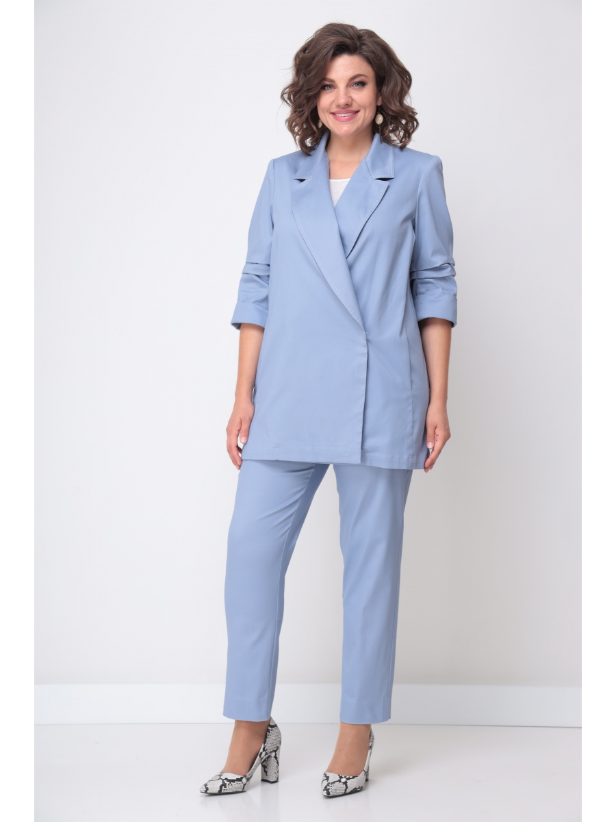 Жакет женский, прямой, свободного кроя. Стиль «оверсайз». Спинка прямая со средним швом. По переду есть карманы. Рукав 3/4. Воротник - лацканы, застежка на пуговице. Жакет без подкладки. Можно носить в комплекте как с платьем, так и с брюками.