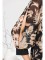 885.2 бежевый принт «ярко-голубые и белые листья»