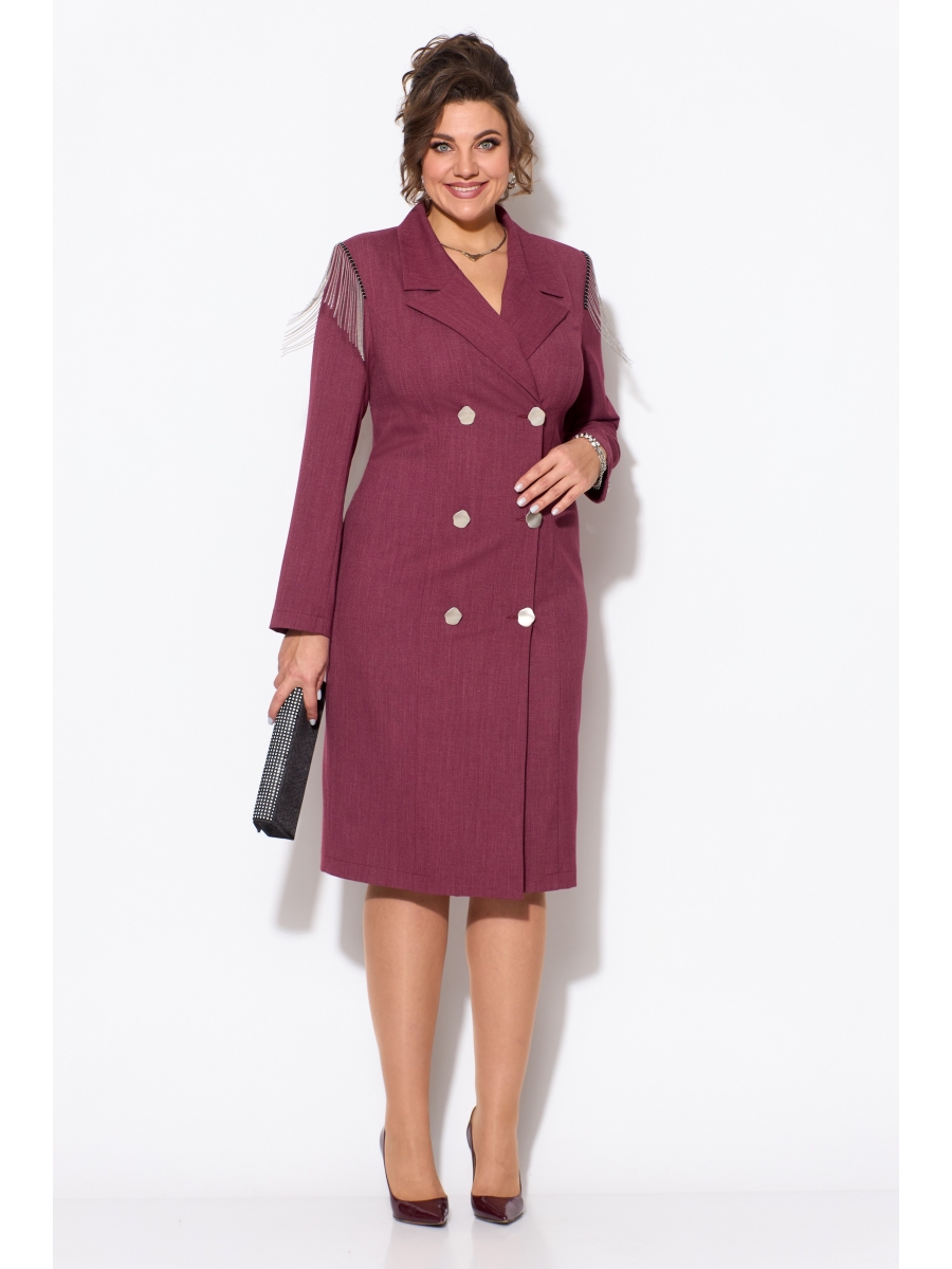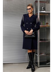 Оформить заказ →Платье женское из текстильной ткани двубортное, полуприлегающего силуэта. По полочке и спинке прилегание создается за счет рельефов, выходящих из проймы. По спинке - средний шов, переходящий в шлицу. Вороник пиджачного типа. Застежка на петли и пуговицы. Рукав втачной двухшовный со шлицей и пуговицами. По окату рукова отделка в виде металлезированной бахромы.