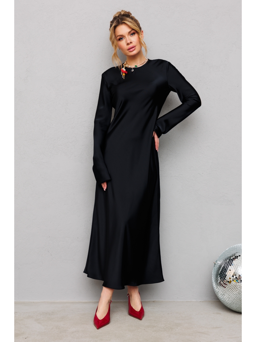 Это настоящая жемчужина в мире моды - платье, которое просто обязано быть в гардеробе каждой стильной женщины. Его удивительный силуэт добавит изысканности и элегантности любому образу. Макси - это не просто длина, это настоящий признак изысканности и загадочности. Длинное атласное как шелк платье украсит ваш образ, подчеркивая вашу женственность. Одним из важных изюминок этого платья являются его расклешенные рукава. И оно также идеально подходит для особых случаев, будь то вечерний ресторанный ужин или праздничное мероприятие. Это платье изготовлено из качественной ткани, которая приятна к телу и добавляет лоск вашему силуэту. Оно имеет полусвободный крой, который заключает элегантное настроение и добавляет удобства каждому движению. Сияющий черный цвет этого платья несет с собой атмосферу страсти и романтики.