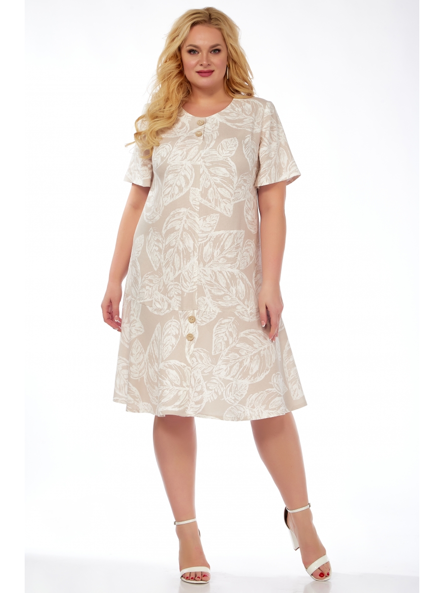 Оформить заказ →Платье женское А-силуэта. Перед с центральным швом и отделочной строчкой, по низу с приточным валаном. Рукав втачной свободного кроя. Перед и волан украшены пуговицами.