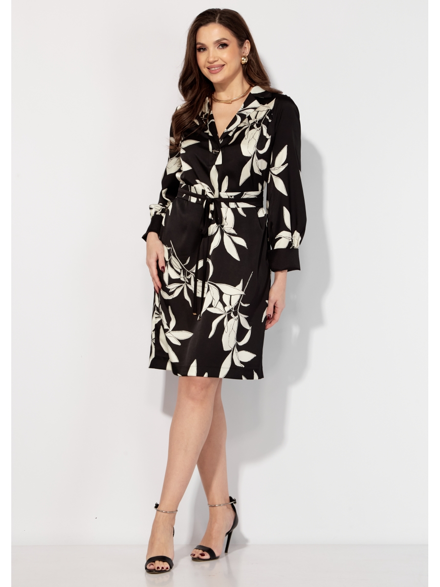 Оформить заказ →Платье женское, прямого силуэта, с длинным рукавом, покроя "реглан" По низу рукава сборка и широкий манжет с разрезом. Длина рукава регулируется отложным манжетом. Воротник отложной с лацканами , с отделочной пуговицей. По центру спинки мягкая встречная складка. Талия акцентирована оригинальным поясом.