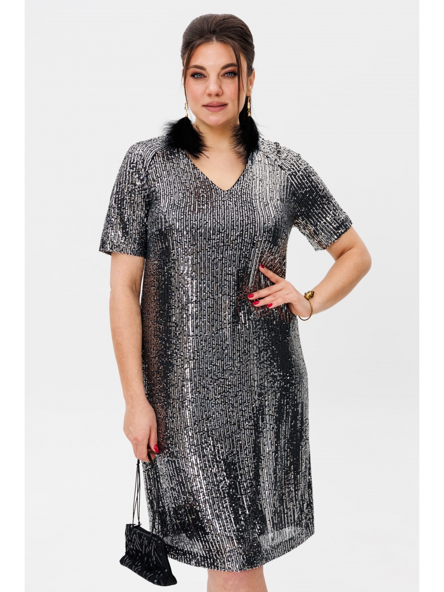 Это не просто платье в пайетках – это исключительная комбинация элегантности и современного шика. Подчеркните свою утонченность и уверенность в себе с его идеальной длиной, v-образным вырезом и безупречным силуэтом.