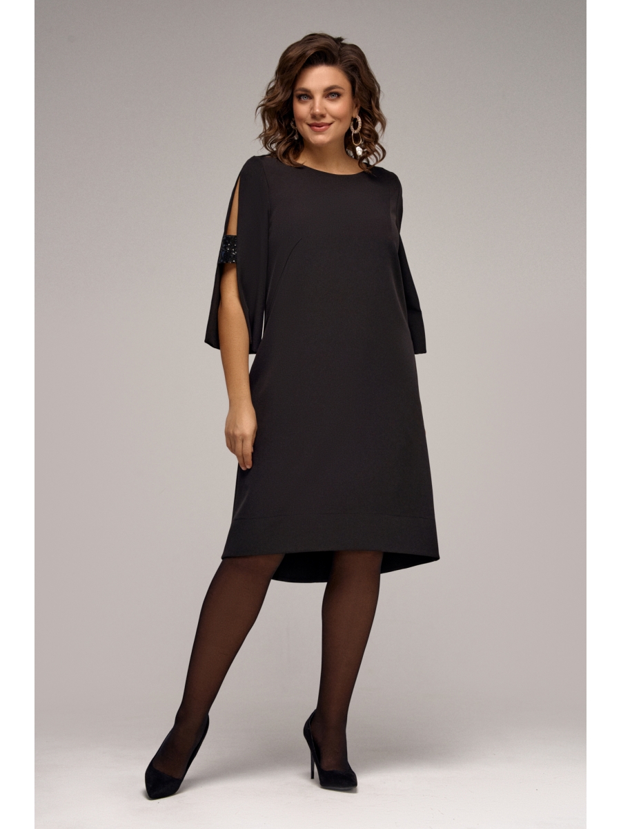 Платье свободного силуэта с ассиметричными вытачками по переду, рукава втачные с разрезами до низа и декоративной вставкой по центру рукава, карманы в боковых швах. Спинка со средним швом, застежка на потайную молнию.