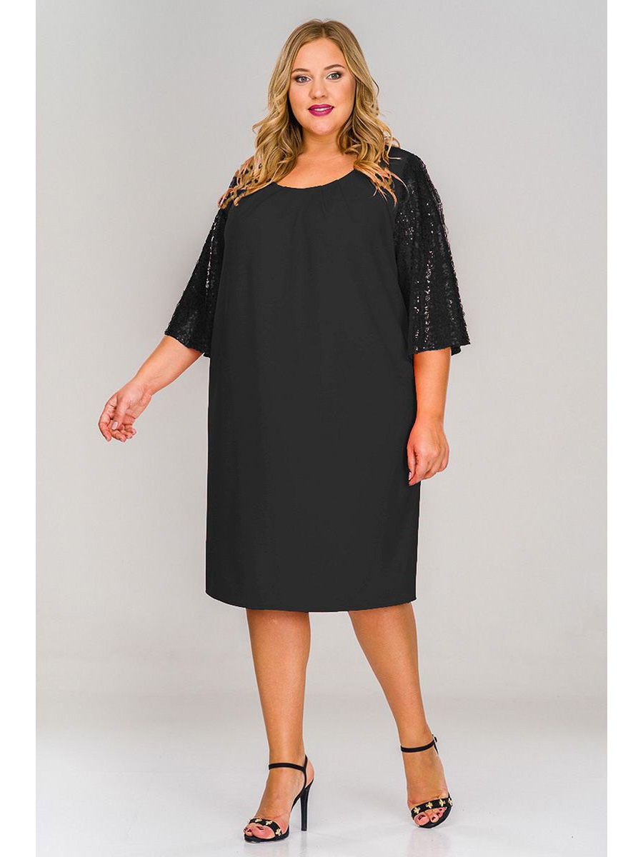 Элегантное коктейльное платье полуприлегающего силуэта. Широкий рукав из пайеток делает его особенно нарядным.