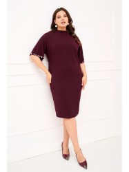 Платье женское полуприлегающего силуэта, по спинке застежка-молния; по низу рукавов декоративные бусины - жемчуг.
