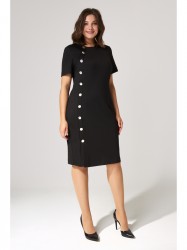 Платье женское прилегающего силуэта выполнено из трикотажного полотна средней плотности, рукава втачные, по переду планка, застежка на петли и пуговицы. Платье полностью соответствует заявленному размеру. Пожалуйста, пользуйтесь таблицей замеров готового изделия.