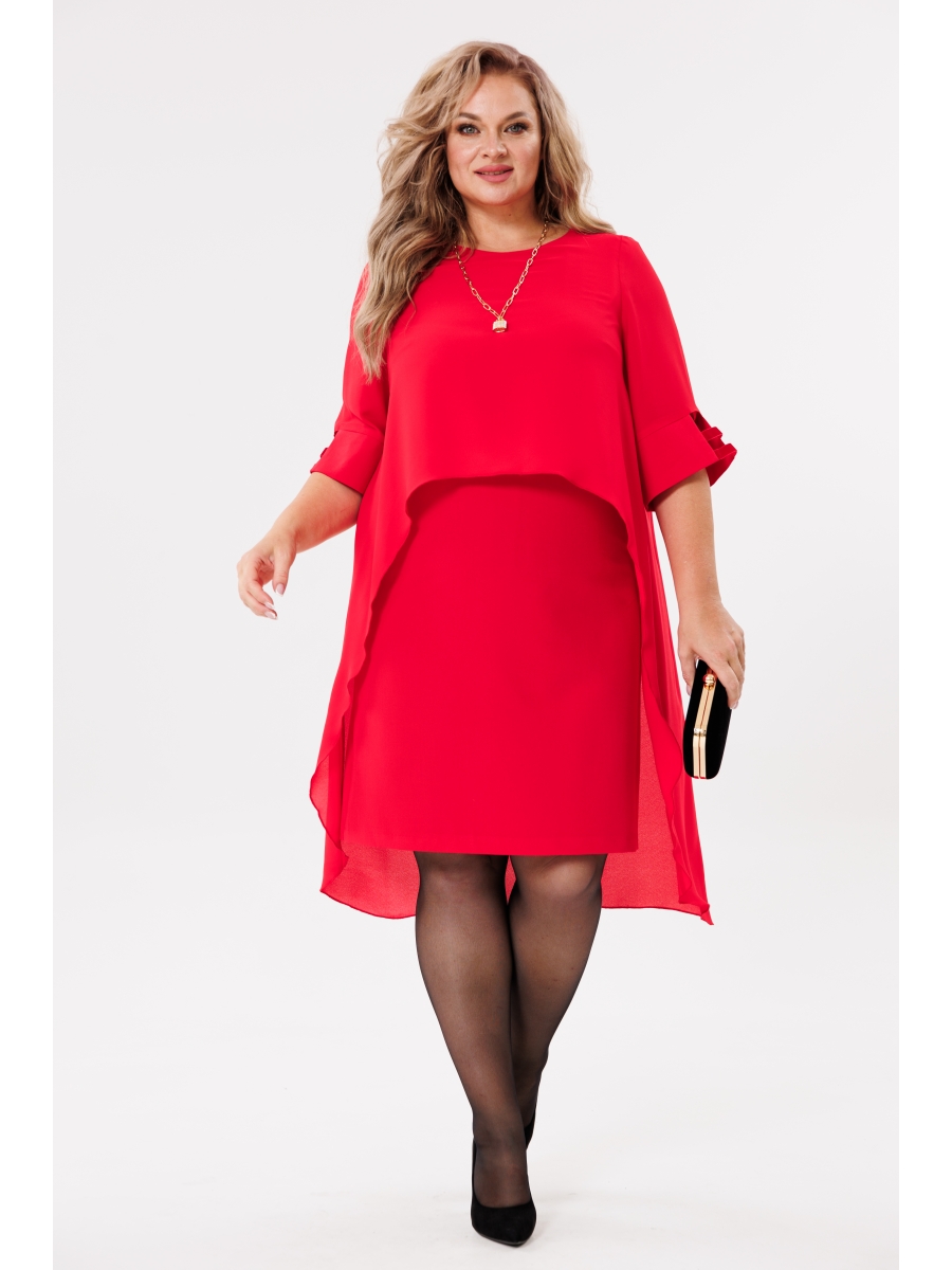 Нарядное двухслойное платье, прекрасно подчеркнет ваши достоинства, спрятав недостатки. Платье подойдет для любых торжеств. Нижнее платье-футляр выполнено из средней плотности трикотажа - водолаз, что обеспечивает комфорт в течение всего дня, не светится. Длина нижнего платья до колена, без рукава с круглой горловиной, перед цельный с нагрудными выточками, спинка с центральным швом по низу и с разрезом. Верхнее шифоновое платье обтачивает по горловине нижнее, с втачным одношовным рукавом 3/4 по низу на манжете с перемычками, перед и спинка цельные, по спинке от горловины встречная застрочная складка. Верхнее платье с удлиненной спинкой. Платье имеет свободный летящий силуэт, что делает ваш образ неповторимым.