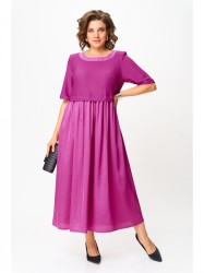 Универсальное и комфортное платье на любой случай вашей жизни. Верхняя часть платья выполнена из фактурного трикотажа с добавлением люрекса; нижняя — из струящегося атласа. Изделие прекрасно вольется в ваш гардероб. Верх платья с завышенной талией и округлой горловиной с отделочной широкой планкой, спинка с центральным швом и завязкой по горловине, по переду декоративный элемент — пришивная брошь. Втачной рукав длиной 3/4. Низ платья — длинная свободная летящая юбка со сборкой из-под верхней части платья, которая обеспечит легкость движений и комфорт. В боковых швах имеет функциональные карманы. Данный фасон дает возможность создания стильного образа как для повседневной носки, так и для праздника. Эта одежда будет уместна как осенью и зимой, так и весной.