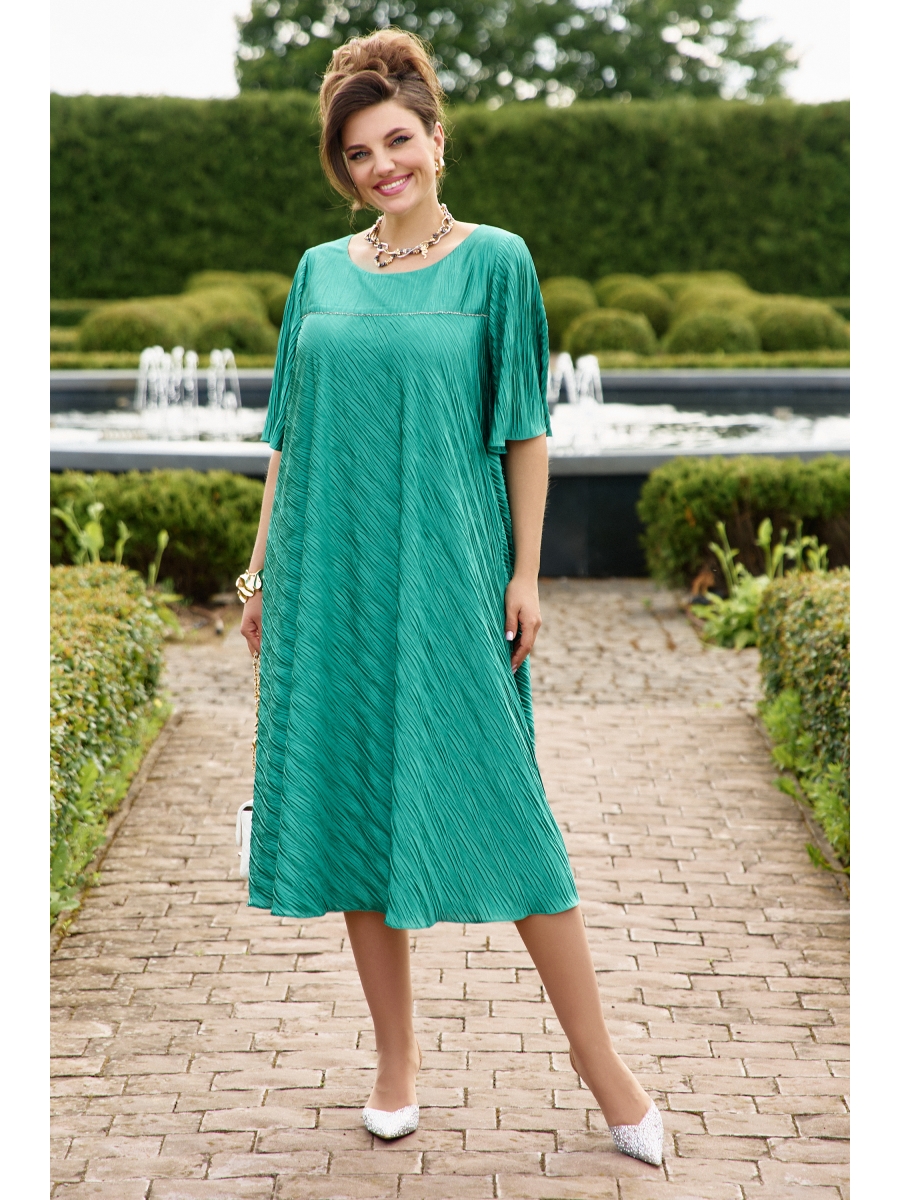 Оформить заказ →Сочный зелёный цвет платья подчёркивает изящество женской фигуры и придаёт образу нотку загадочности. Свободный трапециевидный крой обеспечивает комфорт и свободу движений, элегантно ниспадая по фигуре и деликатно скрывая ее изгибы. Горловина округлой формы, по переду платья отрезная кокетка со вставкой декоративной тесьмы в подрезе. Рукав втачной, расширенный к низу, длиной ¾. Спинка с отрезной кокеткой.
