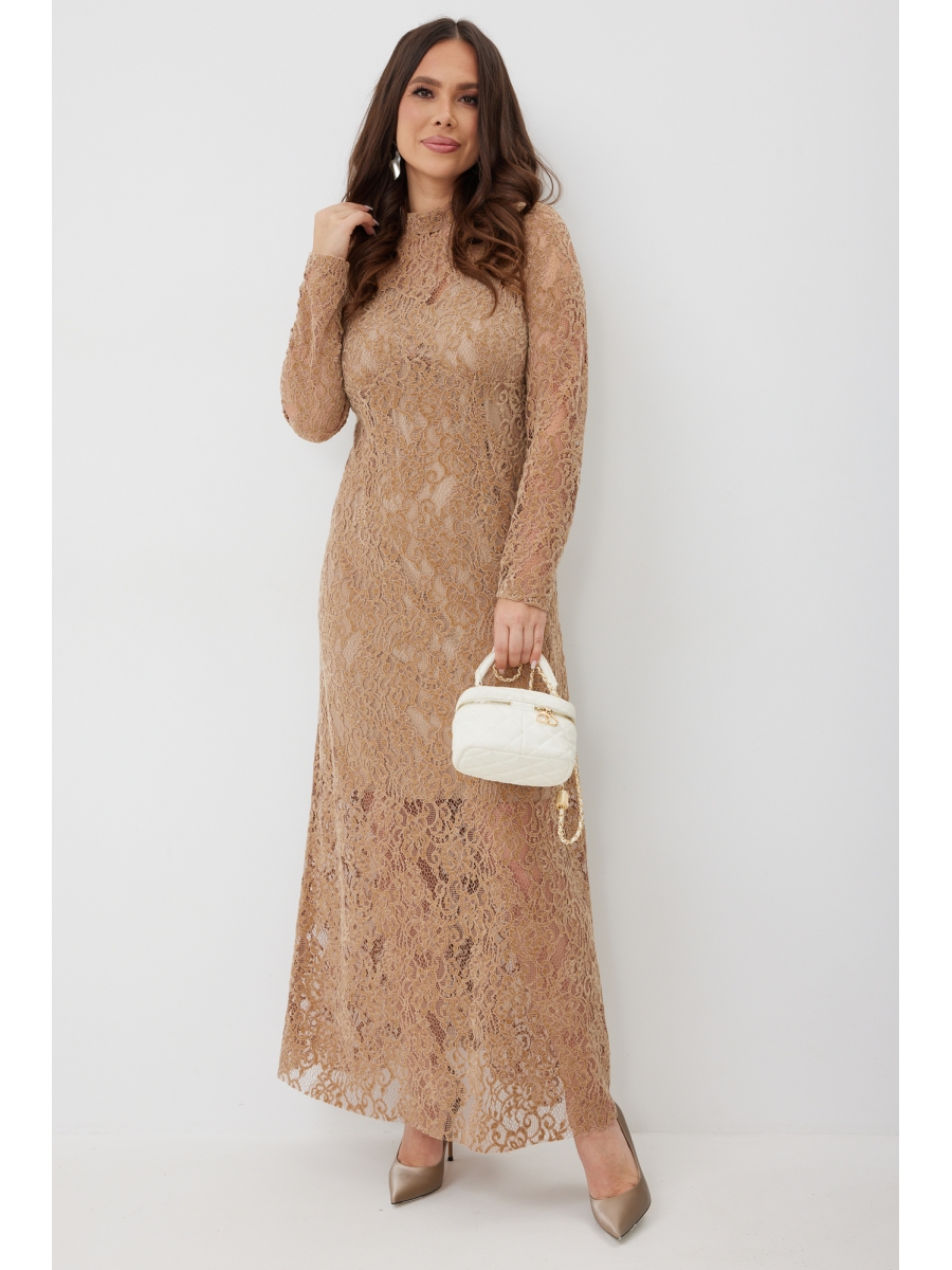 Оформить заказ →Элегантное и стильное платье макси из нежного бархатного кружева. Платье прилегающего силуэта с легким клешением книзу. Платье дополнено нижней комбинацией на тонких бретелях, выполненной из приятной к телу ткани в цвет кружева. Рукав втачной, дополнен притачным, слегка расклешенной кружевной манжетой с открытым срезом. Спереди плате с фигурным подрезом. Горловина обработана стойкой. Низ платья с открытым срезом.