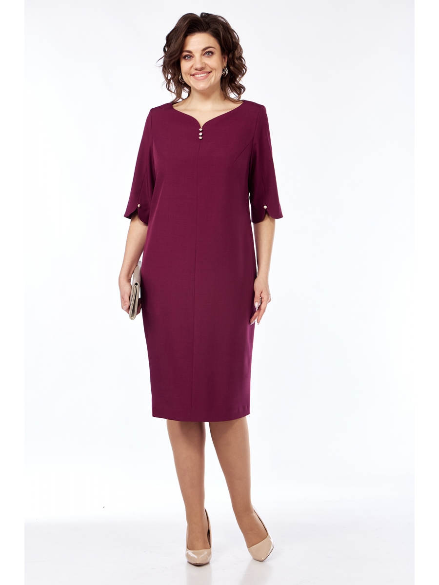 Платье женское, нарядное полуприлегающего силуэта. Выполнено из плательной ткани. Горловина фигурной формы обработана обтачкой. Перед с нагрудными вытачками и средним швом в котором имеется разрез. Спинка со средним швом и талиевыми вытачками. Рукава втачные, одношовные с небольшим разрезом по шву. Платье декорировано пуговицами.