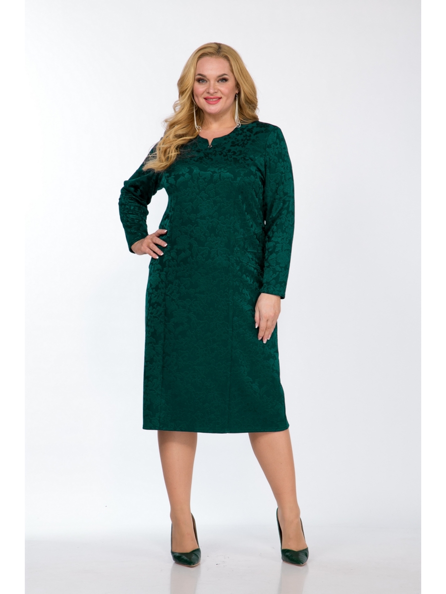 Платье женское нарядное полуприлегающего силуэта с втачными одношовными рукавами. Перед с рельефами от проймы до низа. Рельефы с отрезными горизонтальными деталями в области талии. Горловина округлая, с притачной фигурной обтачкой. Спинка со средним швом и рельефами от плеча до низа.
