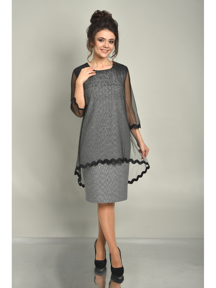 Оформить заказ →Шикарное платье, которое подойдет для любого предстоящего Вам торжества. Платье состоит из двух слоев, сшитых по пройме рукава и горловине. Нижний слой состоит из фактурного трикотажа с люрексом. Имеются вытачки на груди и сзади на талии. Верхнее платье состоит из сетки, а низ его обработан кружевом. (ПРИМЕЧАНИЕ! Кружево может отличаться от оригинала). Спереди верхнее платье короче, сзади длиннее. Рукав 3/4, манжеты состоят из кружева. Платье без застежки.