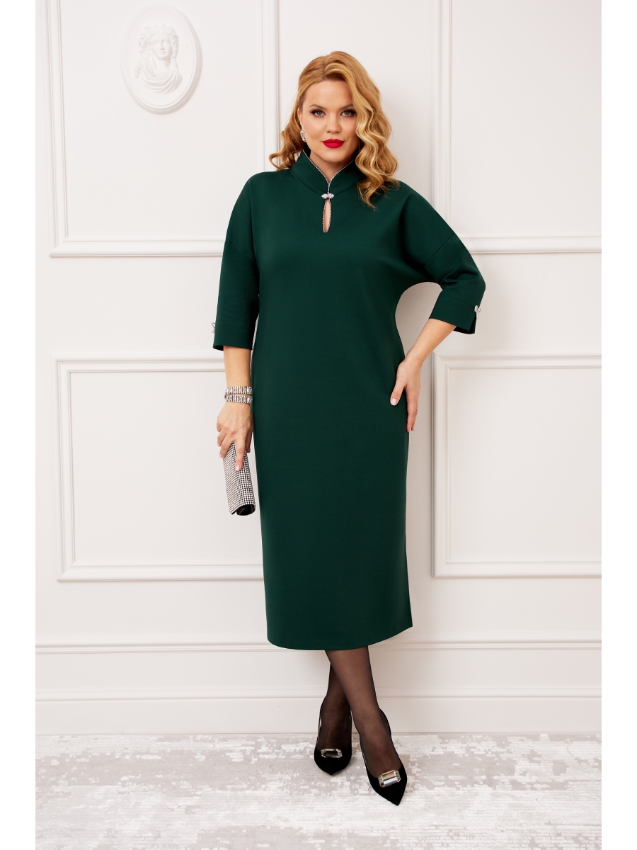 Элегантное и нарядное платье, выполнено из высококачественной трикотажной ткани (ткань мягкая, приятная к телу, хорошо тянется). Горловина стойка с вырезом-капелькой и отделкой из блестящего канта с застежкой дизайнерской брошью, придает модели особый шарм. Рукав втачной, спущенный с манжетой и пришивным декором в виде бантика. Платье с левого бока по низу с небольшим разрезом. Модель стильная и практичная, невероятно стройнит, прекрасно подойдет для торжественного мероприятия, вы будете выглядеть неотразимо и роскошно.