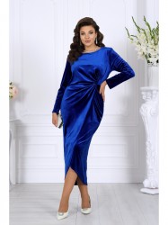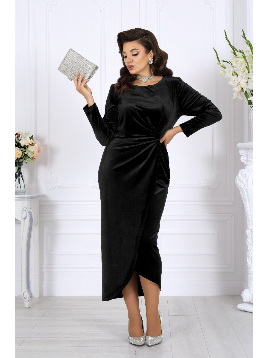 Это не просто платье — это воплощение вечерней роскоши и утончённого стиля. Бархатистый велюр сияет в свете софитов, обволакивая фигуру мягким, но точным прилегающим силуэтом. Каждое движение в нём - как на красной дорожке. Асимметричный крой и эффектная драпировка с перекрутом на талии создают идеальные пропорции, превращая силуэт в произведение искусства. Высокий разрез спереди добавляет смелую, но благородную нотку, а длинные рукава и элегантная округлая горловина сохраняют изысканную сдержанность. Это платье создано для свадеб, торжеств, гала-ужинов и особых вечеров, когда каждая деталь должна подчеркивать ваш высокий вкус и статус.