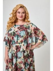 Особенность этого нарядного платья-рукав пелерина, вшитый в рельефы переда и спинки, который широко использовал в своих коллекциях Пьер Карден. Завершает образ подчёркивающий фигуру завязывающийся пояс выше линии талии.
