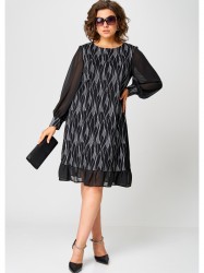 Платье женское нарядно-повседневное полуприлегающего силуэта расширенное к низу. Выполнено из трикотажного полотна в сочетании с шифоном. Вырез горловины круглый на обтачке, рукав втачной из шифона по низу на притачной манжете. По низу вставки из шифона с воланами.