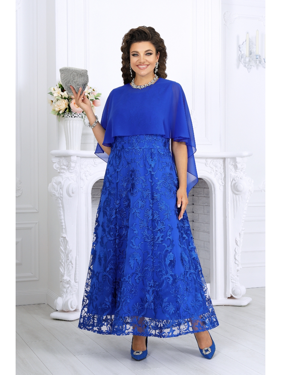 Выполненное из качественного гипюра и гладкой плательной ткани "сатин", оно сочетает в себе классический силуэт и утонченную отделку. Фишкой модели становится асимметричная шифоновая пелерина, которую можно легко снять или надеть в зависимости от настроения. Пелерина добавляет легкости, грации и романтичного шика, а также маскирует зону плеч, если это необходимо.