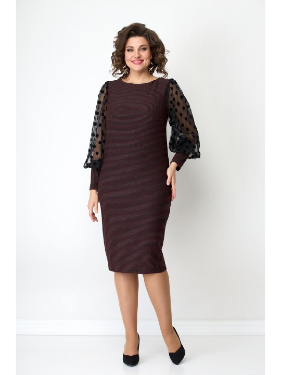 Оформить заказ →Платье женское из двух видов ткани. Основная ткань- цветной трикотаж с люрексовой нитью. Спереди платья нагрудные вытачки. Главным украшением платья служат рукава из сетки, заканчивающийся манжетой из основной ткани. По спинке талиевые вытачки выгодно корректирующие фигуру. Застежки нет. Шлица отсутствует. Горловина округлая.