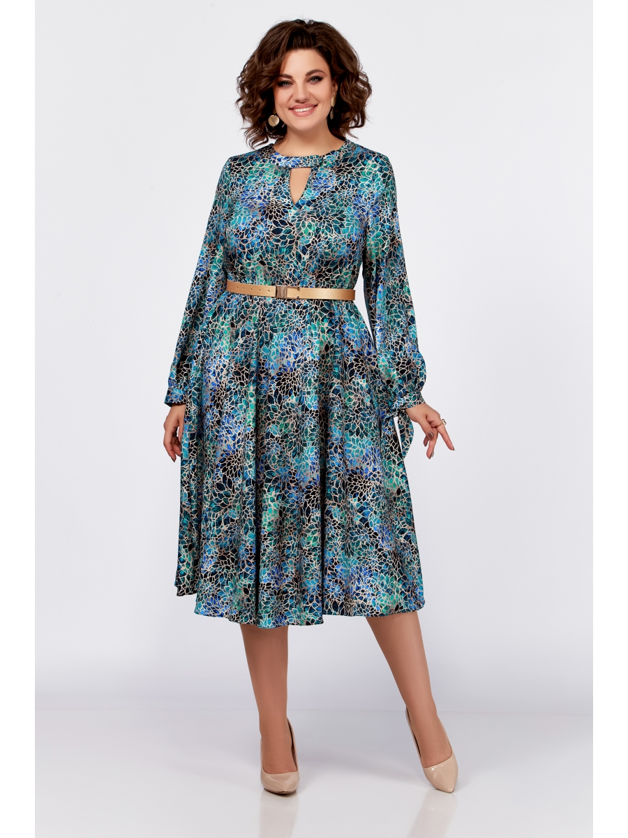 Нарядное платье 775 бирюзово-бежевый принт, Swallow – купить с доставкой в Новосибирске на novosibirsk.belpodium.ru