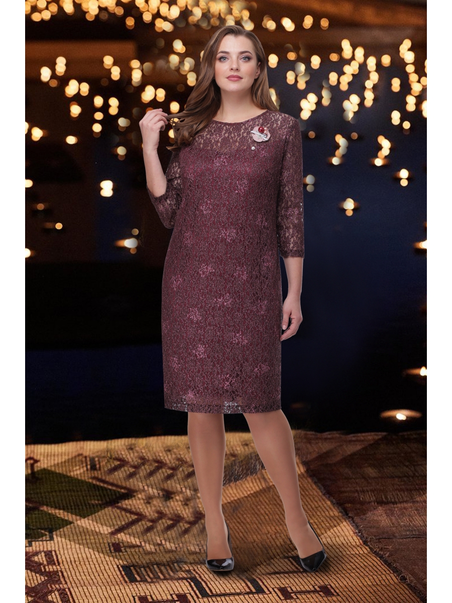 Оформить заказ →Элегантное коктейльное платье из кружевного полотна полуприлегающего силуэта с втачным рукавом длиной 3/4. По переду-нагрудные вытачки. Вырез горловины-круглой формы. По спинке-средний шов и талиевые вытачки. Застежка на потайную молнию в среднем шве по спинке. Нижний чехол платья из трикотажного полотна. Украшением платья служит сьемная брошь .