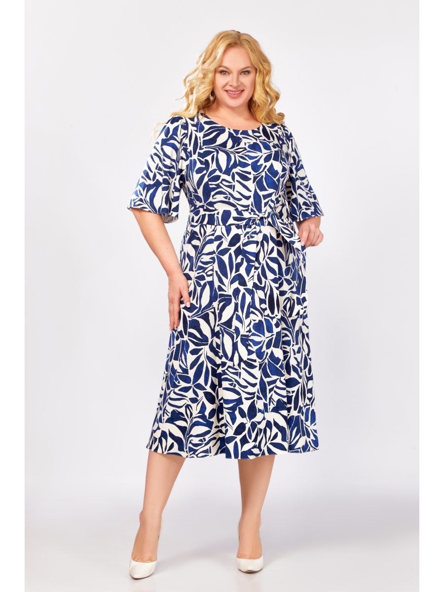 Нарядное платье 854 сине-молочный принт, Swallow – купить с доставкой в Новосибирске на novosibirsk.belpodium.ru