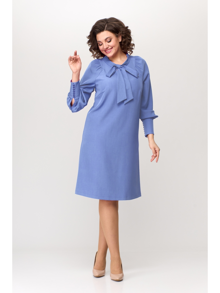 Элегантное женское платье из однотонной плательной ткани. Платье «А» образного силуэта с круглой горловиной оформленной стойкой, украшением служит съемный бант. Платье с фигурной проймой, рукав расширенный, со стойкой по окату и низу. Низ рукава оформлен широким манжетом с декоративными пуговицами. Платье без подкладки.