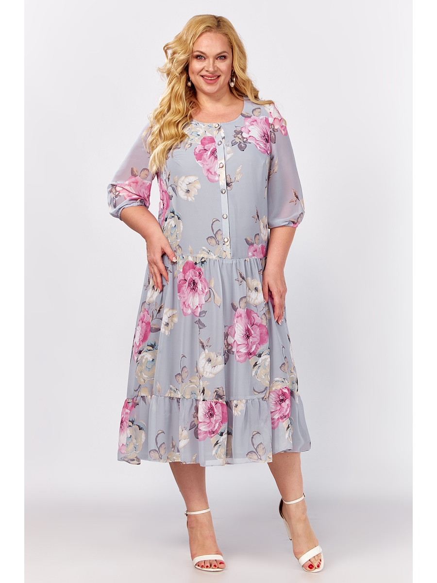 Легкое, воздушное платье из шифона на трикотажной подкладке для женщин подарит ощущение летнего бриза даже в самый знойный день. Этот элегантный наряд обязательно привлечет внимание окружающих! Нежный дизайн ткани добавляет шарм и делает его по-настоящему женственным. Крой А-силуэт нарядного изделия подходит как для повседневного образа, так и для особых случаев. Силуэт модели выделяет женственность фигуры и делает образ стильным. Платье создано для тех, кто предпочитает удобство и стиль в одном флаконе. Миди-длина платья и воланы подчеркнут грацию фигуры и добавят загадочность Вашему образу. Перед платья частично на застежке на петли и пуговицы. Рукав втачной, 3/4, по низу на резинке. Выбрав эту модель, Вы точно будете выглядеть неповторимо на любых мероприятиях!