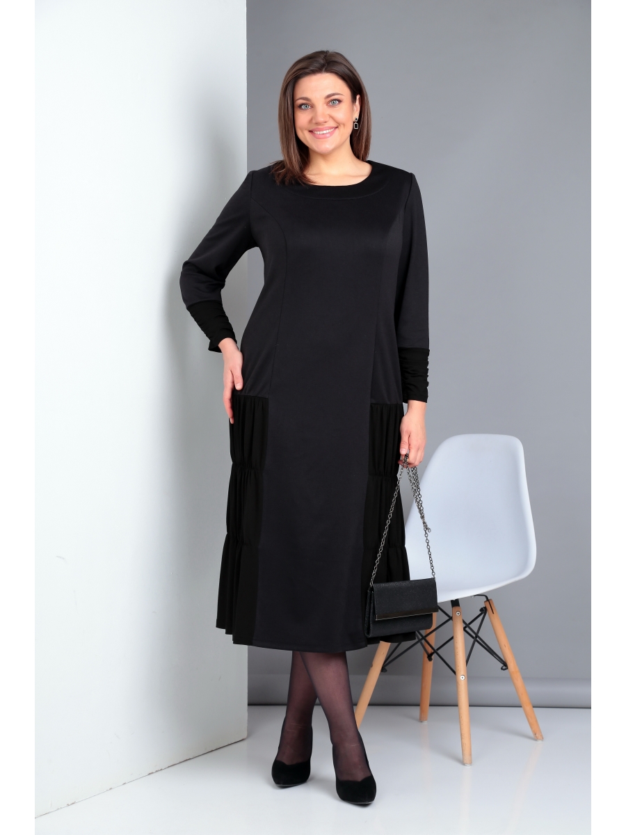 Оформить заказ →Платье женское, полуприлегающего силуэта, из трикотажного полотна с плечевыми накладками. Горловина круглой формы с притачной планкой. Перед с рельефами от проймы до низа. Спинка с рельефами от проймы до низа. На боковых частях переда и спинки сборка на эластичную тесьму. Рукава длинные, одношовные, с притачной манжетой, на которой располагается сборка на эластичную тесьму.