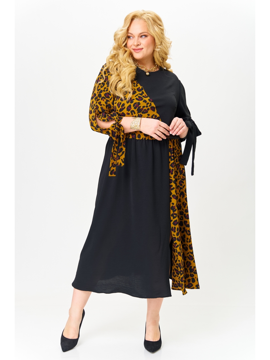 Нарядное платье артикул: М195 черный с лео от OVERYOU - вид 1