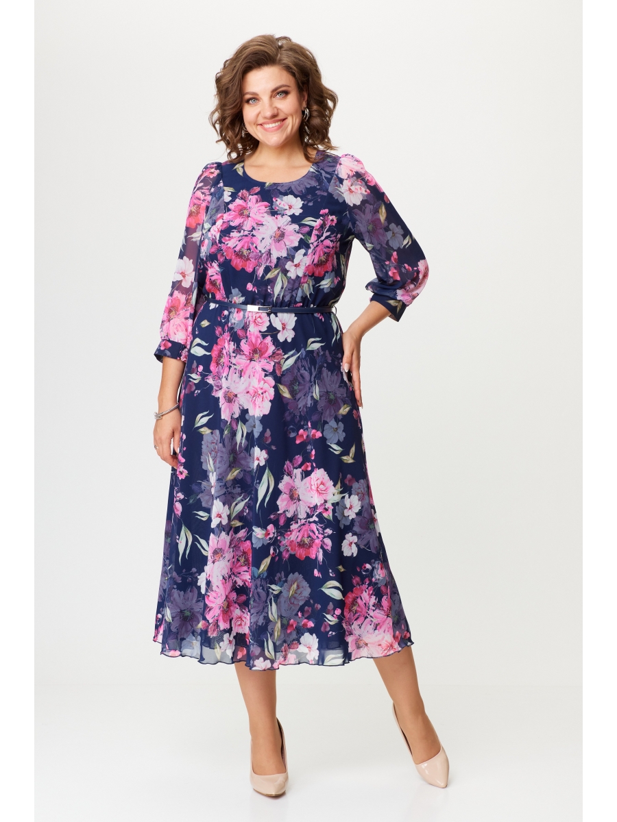 Нарядное платье М534-1 синий+розовые цветы, СлавияЭлит – купить с доставкой в Новосибирске на novosibirsk.belpodium.ru