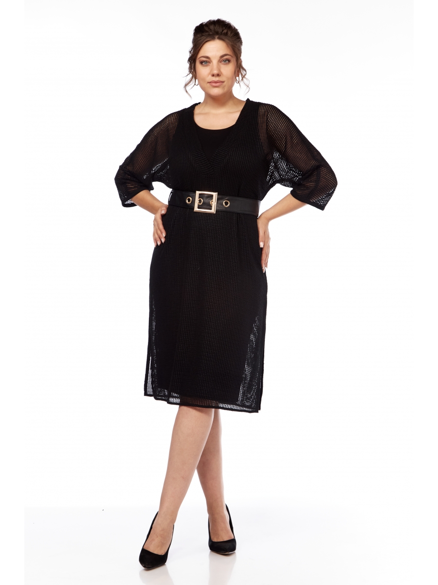 Комплект, состоит из двух изделий: верхней туники из полотна с сетчатой структурой, нижнего платья из мягкого очень приятного трикотажа.