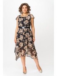 Платье женское из шифоновой ткани, отрезное выше линии талии. По полочке нагрудные вытачки, по спинке - талевые. Платье на резинке на уровне груди. По спинке потайная молния. Юбка изделия-полуклеш. Платье на подкладке. Рукав крылышко.