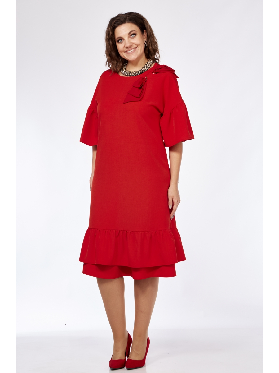 Как можно устоять перед платьем свободного кроя, скрывающим всё, что хотим скрыть и подчеркнуть все достоинства? Мы думаем, что никак. Женственно, нарядно и удобно - вот что можно сказать об этом платье. Оно создает красивую линию женского силуэта, притягивая взгляды. Платье удачно смотрится как на торжественном мероприятии, так и на вечерней прогулке и в офисе. Платье свободного кроя. Линия плеча спущенная, без вытачек. Горловина полукруглая, рукав 3/4. По нижней линии рукава волан, низ изделия заканчивается двумя воланами. Длина изделия ниже колена. Визитной карточкой данной модели является красивый нарядный бант, который продет через два люверса. Бант съемный, платье просто с люверсами так же хорошо смотрится.