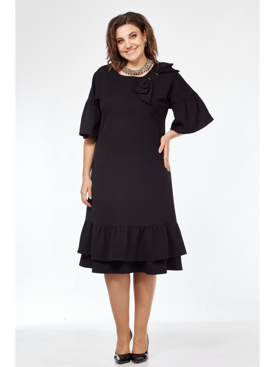 Как можно устоять перед платьем свободного кроя, скрывающим всё, что хотим скрыть и подчеркнуть все достоинства? Мы думаем, что никак. Женственно, нарядно и удобно - вот что можно сказать об этом платье. Оно создает красивую линию женского силуэта, притягивая взгляды. Платье удачно смотрится как на торжественном мероприятии, так и на вечерней прогулке и в офисе. Платье свободного кроя. Линия плеча спущенная, без вытачек. Горловина полукруглая, рукав 3/4. По нижней линии рукава волан, низ изделия заканчивается двумя воланами. Длина изделия ниже колена. Визитной карточкой данной модели является красивый нарядный бант, который продет через два люверса. Бант съемный, платье просто с люверсами так же хорошо смотрится.