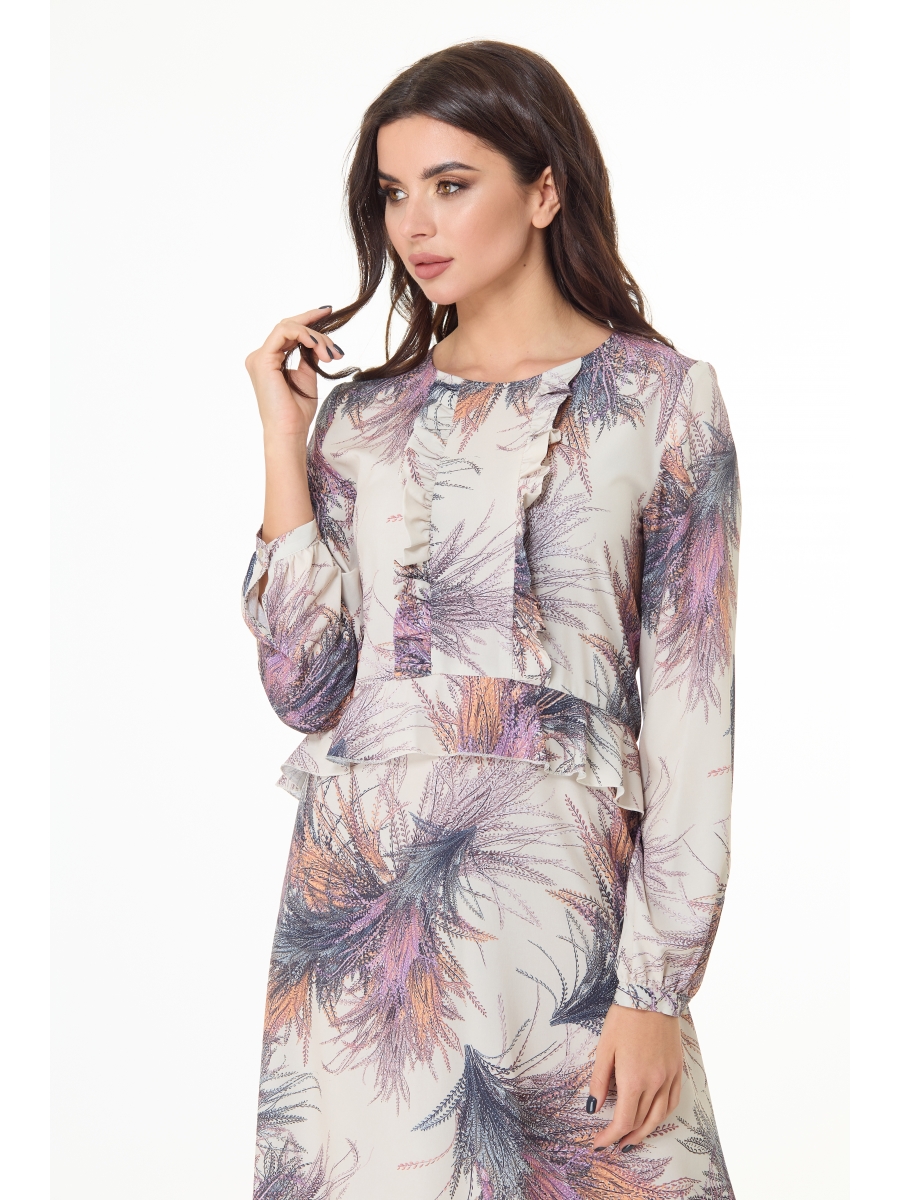 Платье полуприлегающего силуэта, длиной ниже колена, отрезное по талии с фигурной линией подреза – спинка плавно удлинена относительно переда.
