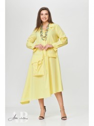 Женское летнее платье из Белоруссии, выполненное в стиле бохо, с силуэтом трапеции и втачным воротником-рубашкой. Оно имеет стойку отрезную, центральную застежку на петлях-пуговицах до линии подреза и одношовный втачной рукав с манжетами. На левом плече находится декоративная пата с 5 блочками, а по правой стороне переда притачивается клапан настрочного обьемного кармана с 6 блочками. Низ платья отрезной и расклешенный с ассиметричным декоративным клапаном. Платье выполнено из натуральной хлопковой ткани. Оно идеально подходит как для повседневного, так и для офисного использования. Платье доступно в желтом, зеленом и фуксия цвете и разных размерах в коллекции Abbi. Купить летнее платье из Белоруссии можно в интернет магазине, удобно пользоваться поиском по фильтру выбрав бренд Abbi.