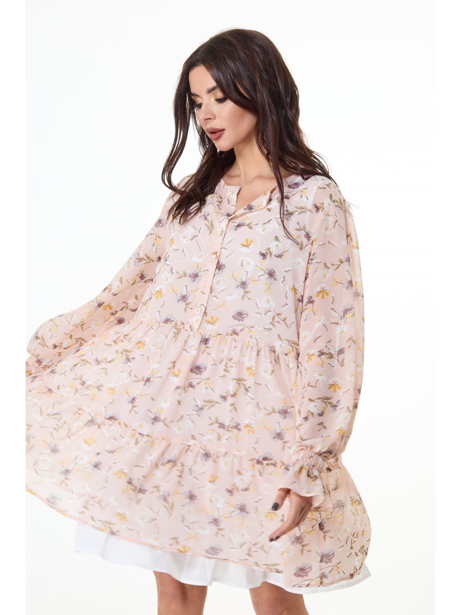Нижнее платье выполнено из хлопка с оборкой по низу, за счёт выступающего края создаёт эффект многослойности.