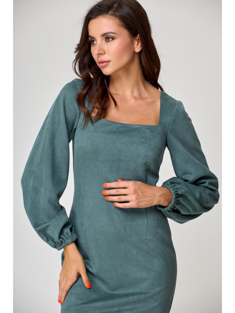 Платье женское прилегающего силуэта, длина выше колена. Рукав втачной, длинный, низ на резинке. По переду квадратный вырез горловины изящно подчеркивающий декольте. По спинке в среднем шве потайная застежка молния. Прилегание достигнуто при помощи талиевых вытачек. Платье женственное, стильное, отлично смотрится на любой фигуре и при этом в нем вам будет комфортно.