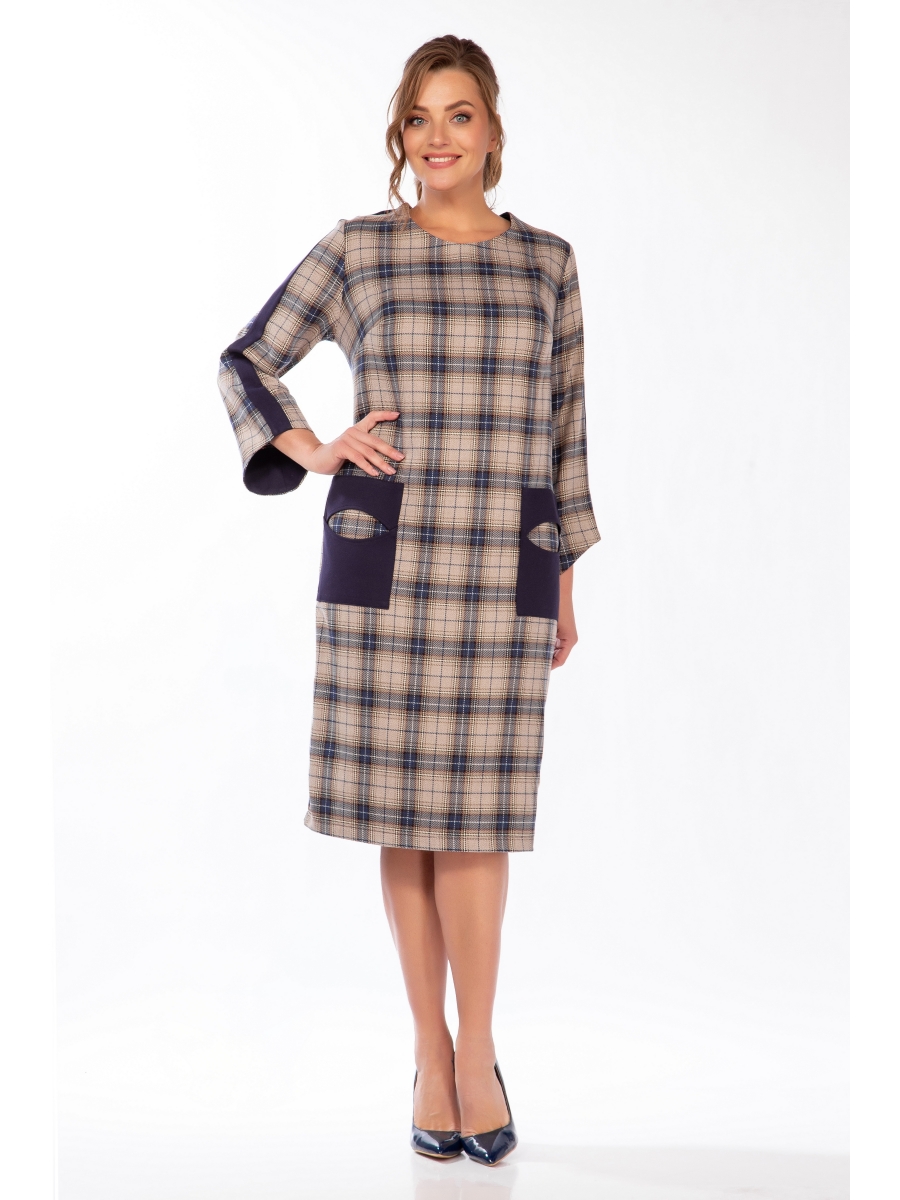 Оформить заказ →Платье женское полуприлегающего силуэта. Рукав фигурный, втачной, украшен полоской из контрастной ткани. Полочка украшена накладными карманами из контрастной ткани, без застежки.