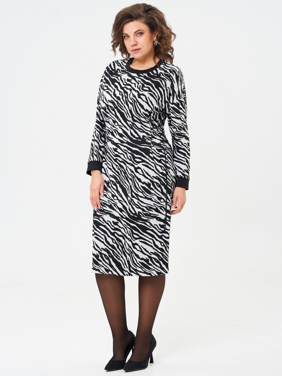 Оформить заказ →Стильное платье свободного прямого силуэта выполнено из мягкого трикотажного полотна принт «зебра». Округлый вырез горловины обработан бейкой. По бокам настрочены петельки в которые вдет эластичный шнур, с помощью которого можно подчеркнуть линию талии. Имеется фиксатор и наконечники по шнуру. Спинка со средним швом. Линия плеча плавно спущена. Рукав втачной одношовный с притачной манжетой. По бокам расположены разрезы.